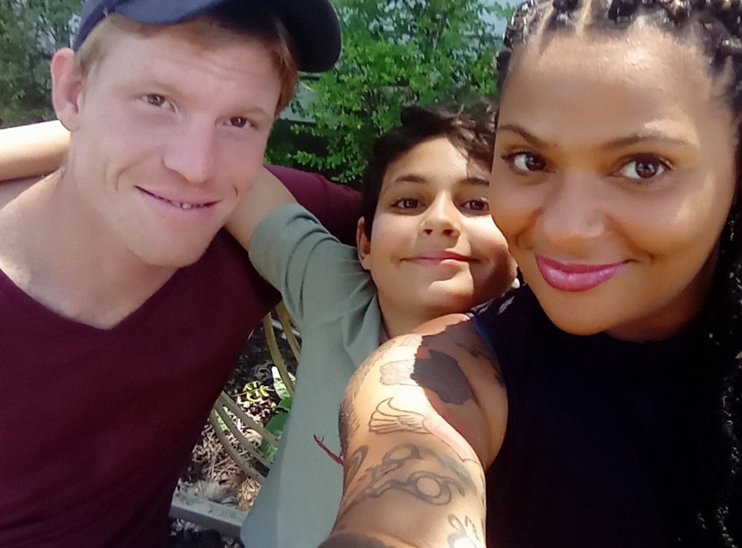 Jonathan (sound tech) Bear (cajon percussion) & Jade (vocals)